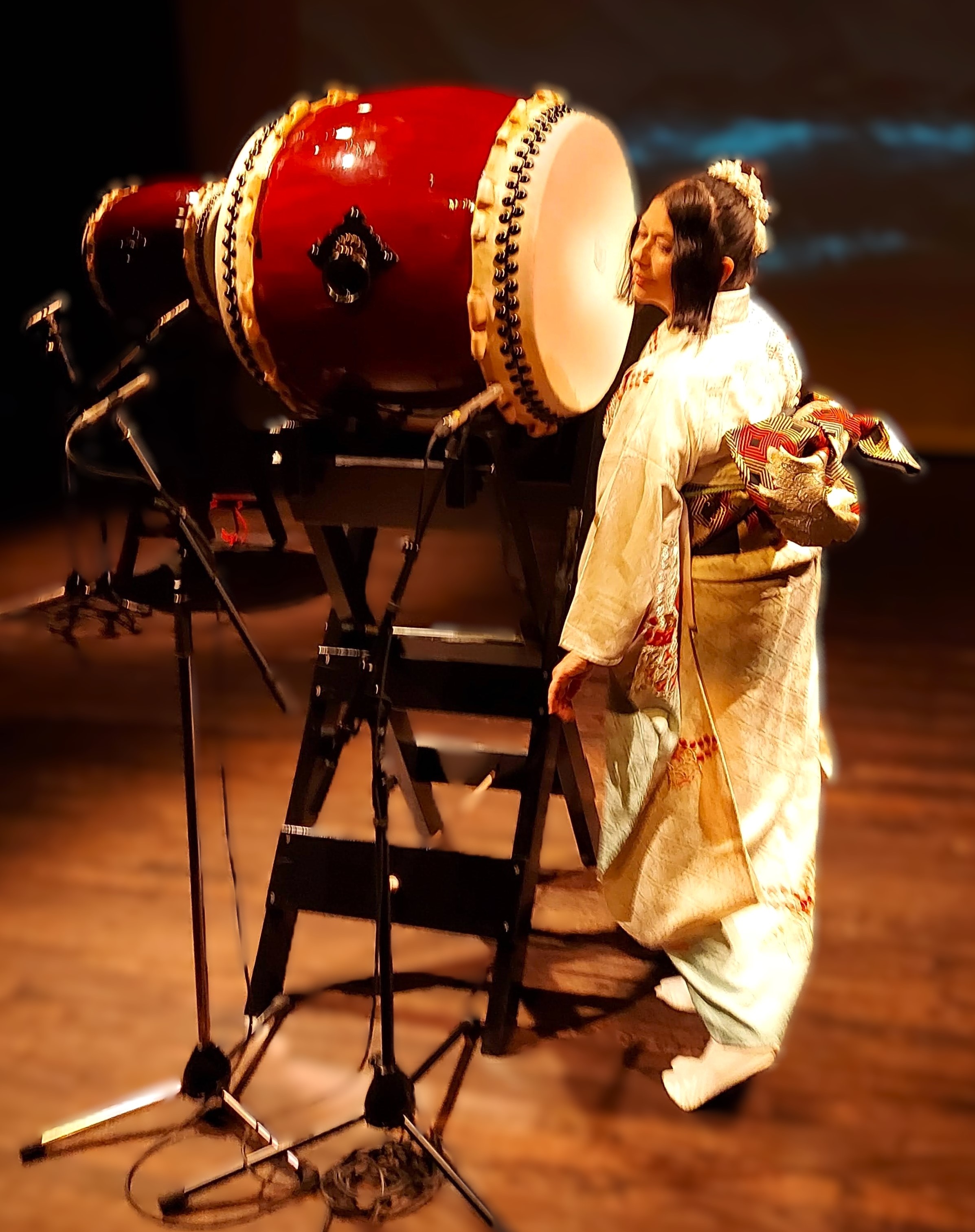 Later in Vancouver, she was introduced to taiko joining Sawagi Taiko. She also culminated her academic studies with her thesis, Development of Canadian Kumi-Daiko - ensemble taiko drumming and the article, “Asian Women Kick Ass Through Japanese Drumming”.